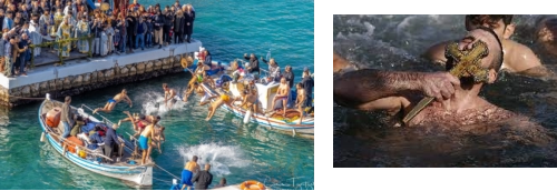 jump into the water to recover it.  The one who finds the cross will be blessed for the whole year, the water is totally