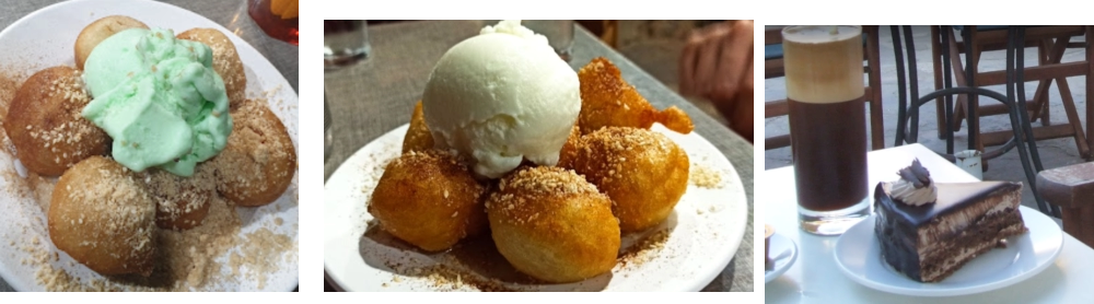Sitzgelegenheiten im Freien für Getränke und Essen.